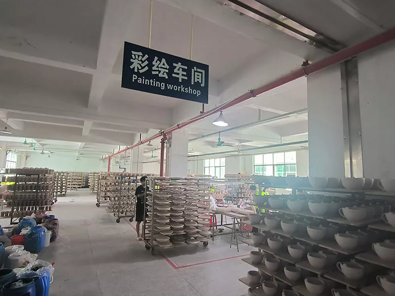 Нашата основна фабрика във Фуджиан е специализирана във висококачествени керамични прибори за хранене, включително чаши (чаши за кафе и чай) и свещи. Fujian е център за керамична изработка. Нашата фабрика може да се похвали с най-съвременни производствени линии и ISO-сертифицирани процеси, като щателно гарантира прецизност при оформянето, остъкляването и стрелбата, осигурявайки както функционални, така и естетически приятни продукти.