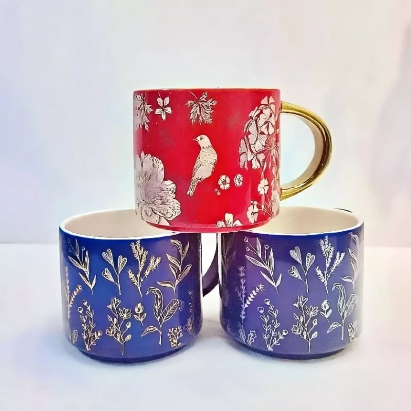 Тази керамична халба с галвапла златна дръжка, щателно изработена с етикети, олицетворява уникален чар, вдъхновен от природата. Независимо дали става въпрос за деликатните текстури на цъфтящите цветя, живите форми на пъргави птици или завладяващите модели на естествени цветни блокове, халбата деликатно улавя даровете на флора, фауна и живи цветове. За да отговарят на всеки стил, дръжката на халбата е персонализирана. Версията със златист свети с богат златен оттенък, който наподобява 18K злато, добавяйки нотка на изтънченост. Той може да бъде персонализиран и с любимия ви цвят.