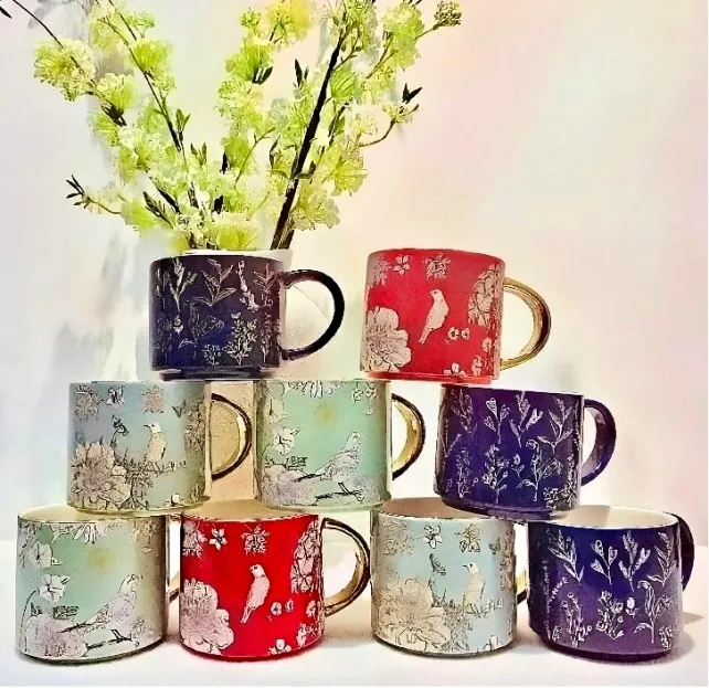 Керамичната чаша на BYF с галвапла с електропластирана златна дръжка са особено отличителни благодарение на техните златни дръжки и ръчно изработени етикети. Богати на цвят и красиво шарени, те също са практични, което ги прави универсални ежедневни предмети, идеални за лична употреба или като подаръци. Тези красиви халби комбинират естетическа привлекателност с практичност, предавайки усещане за цел и качество, което повишава качеството на живот, за разлика от всяка обикновена халба.