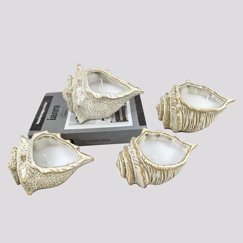 Притежателят на свещта на Ceramic Seashell на BYF е вдъхновен от морски черупки, използвайки керамика, за да пресъздаде прецизно формите, текстурите и други детайли на различни черупки, създавайки илюзията за оживяване на истински раковина. Неговият уникален дизайн олицетворява естествената красота на морския живот. Извършването на бяла класика: Кривите точно възпроизвеждат пълните контури на интертидални гребени, ръбовете се извиват, сякаш нежно се целуват от вълни, а повърхността е релефна с фини радиални модели. Нежното докосване на върховете на пръстите ви разкрива грапавостта и топлината на истински раковина. Океанска фея: Спиралната форма на раковината е още по -динамична, като вълнообразната външна стена напомня на гънките на истинска раковина. Синята глазура преминава от светло сиво-синьо към мъгливо синьо, създавайки градиент, който предизвиква отраженията на светлината на морето. Когато пламъкът на свещта с една века трепне, спиралните модели се трансформират в течащи сребърни линии, създавайки илюзията за миниатюрен океан, скрит в черупката. Текстурираният дизайн на пачуърк: Контрастната бяла и жълта цветова схема е най-привличащата вниманието. Основата е мека бели, с жълти линии, рамкиращи джантата и вените, създавайки лунен ръб. Поставен върху тъмносива книга, златният ръб допълва черно -белия текст на гръбначния стълб. Изработена от фино изстреляна керамика, тя може да се похвали с гладка, издръжлива текстура. Различните цветове и текстури показват различни стилове на изработка, от естествено зърно до изискани цветови комбинации, показващи красотата на майсторството.