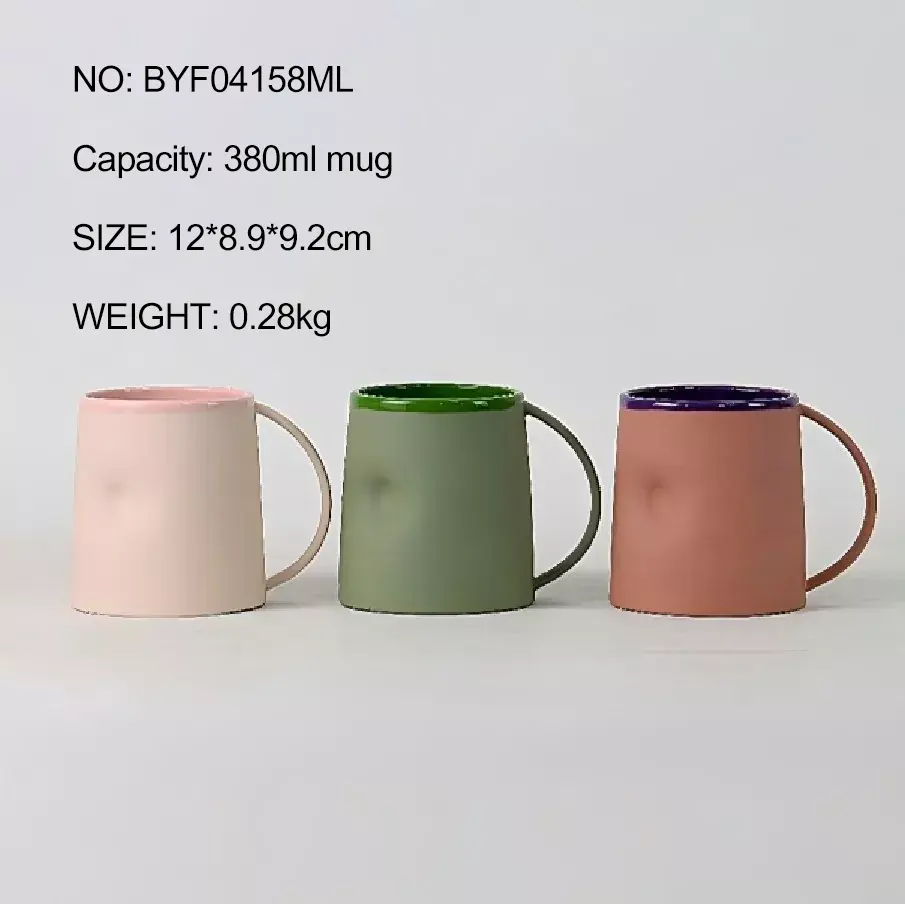 Правилният модел (BYF04158MS) се предлага в три пастелни нюанса: светлосиво, бежово и тюркоаз. Той държи 270ml, с размери 11,5 x 8,7 x 6,7 см и тежи 0,19 кг. И двете чаши са сходни по височина, въплъщавайки свеж и елегантен стил. Левият модел е малко по -голям и държи повече, което позволява на клиентите да изберат този, който най -добре отговаря на техните нужди.