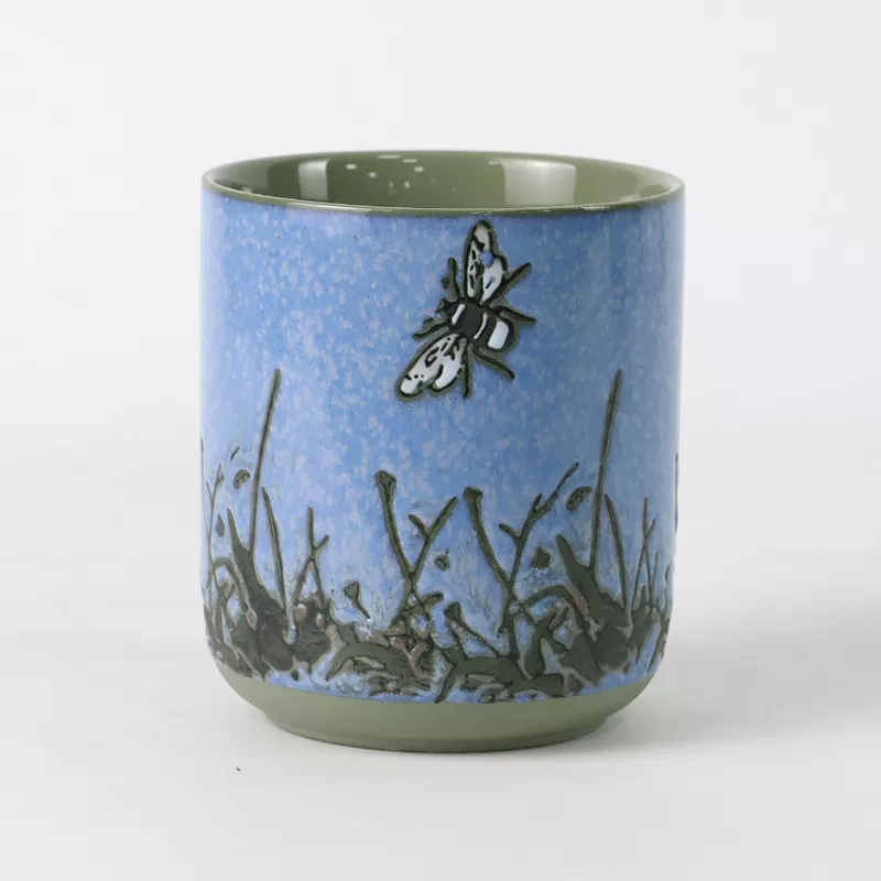 Тази серия керамични свещници с рисунки на насекоми от BYF Arts & Crafts е вдъхновена от естествените образи на „симбиозата на кордицепс“, черпейки от същността на класическата източна естетика и мистичната красота на звездното небе. Екстериорът прилича на огромно звездно небе, поръсено с фини златни петна, сякаш блясъкът на Млечния път се държи в дланта на ръката ви; интериорът използва чиста глазура, прозрачна като огледало, създавайки силен визуален контраст с текстурата на звездното небе отвън, демонстрирайки прецизна изработка при взаимодействието на светлина и сянка. Ръчно рисуваните пеперуди, стъбла на трева и шарки на глухарчета на дъното, щателно нарисувани от опитни занаятчии, са живи и живи, като че ли разказват вечна история за цикъла на живота и симбиозата на природата. Всяка чаша е уникално произведение на изкуството, олицетворяващо благоговение към природата и тържество на живота.